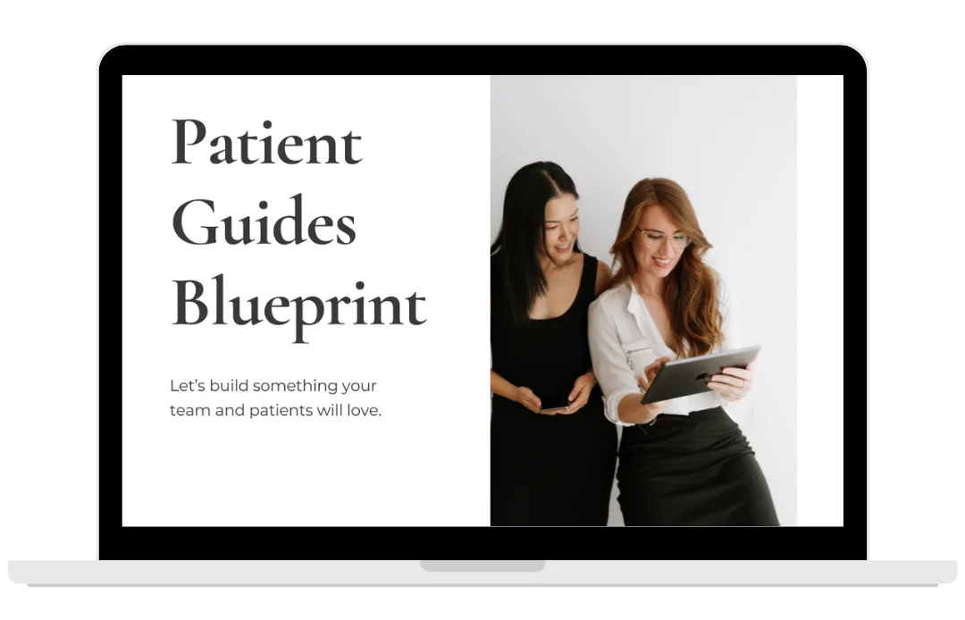 That’s exactly why we built The Patient Guides Blueprint — to help you create professional, patient-friendly resources once, and reuse the same framework again and again across your clinic.